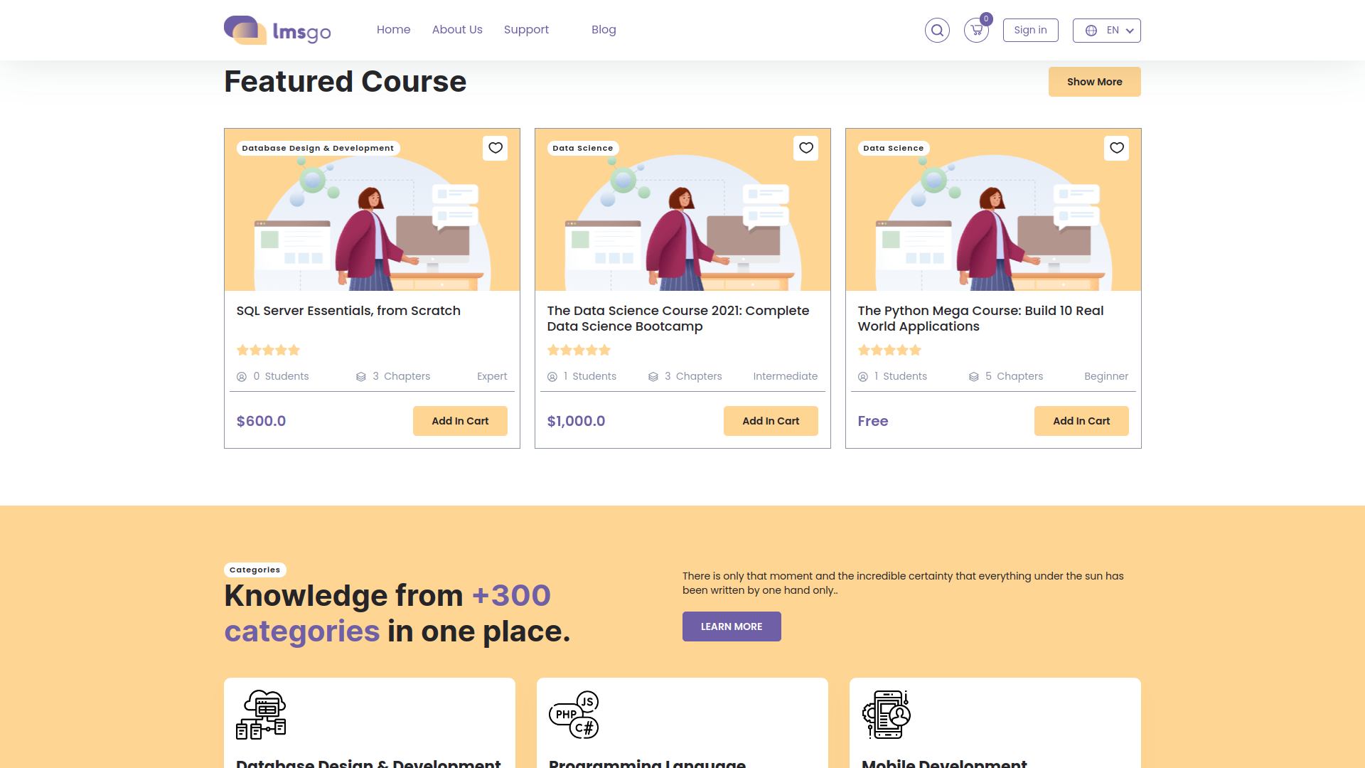 Easy to manage learning by listing courses and courses’ categories